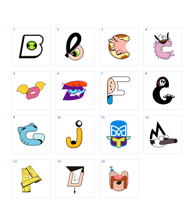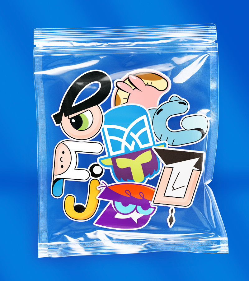 This personal project was born from the idea of turning classic Cartoon Network characters into typography. The concept was to use each character’s initial letter as a base, blending their traits, colors, and personality until each letter became almost a logo of its own.